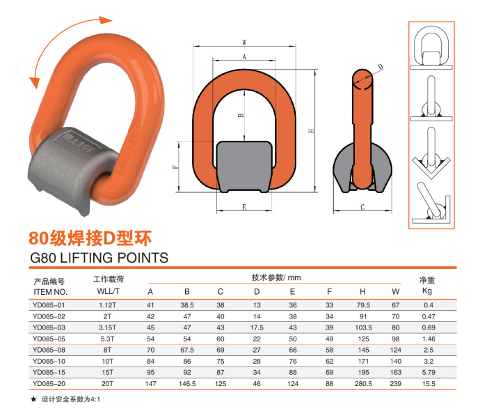 YD085-10 G80級焊接吊環焊接條件: