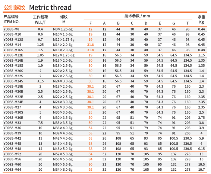 YD083-M150萬向旋轉(zhuǎn)吊環(huán)公制螺紋